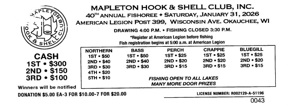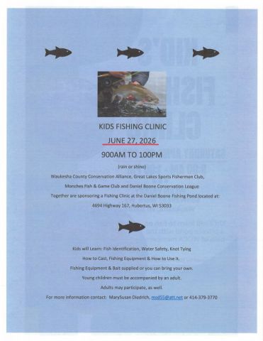 April 13th, 2026 is the date for the WCC/DNR Spring Hearings! Reserve that date on your caendar now so you do not miss the annual event! You get a chance to elect 2 County residents to the WCC as your delegates to the Wisconsin Conservation Congress. Voting for delegates must be performed in-person.
