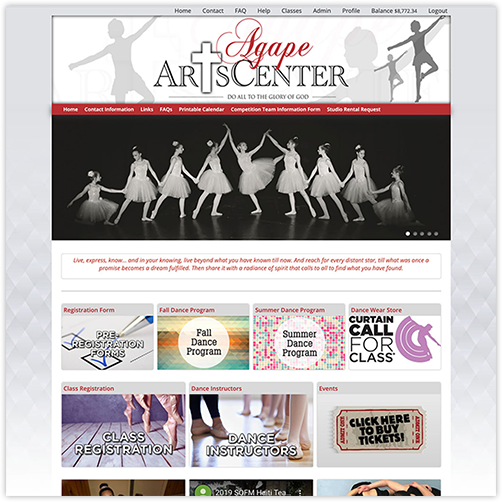 Agape Arts Center was looking for an inexpensive web site that could communicate to it's members and provide information on their dance programs that they offer. Service-Life provided the custom design work and Agape uploaded their content.